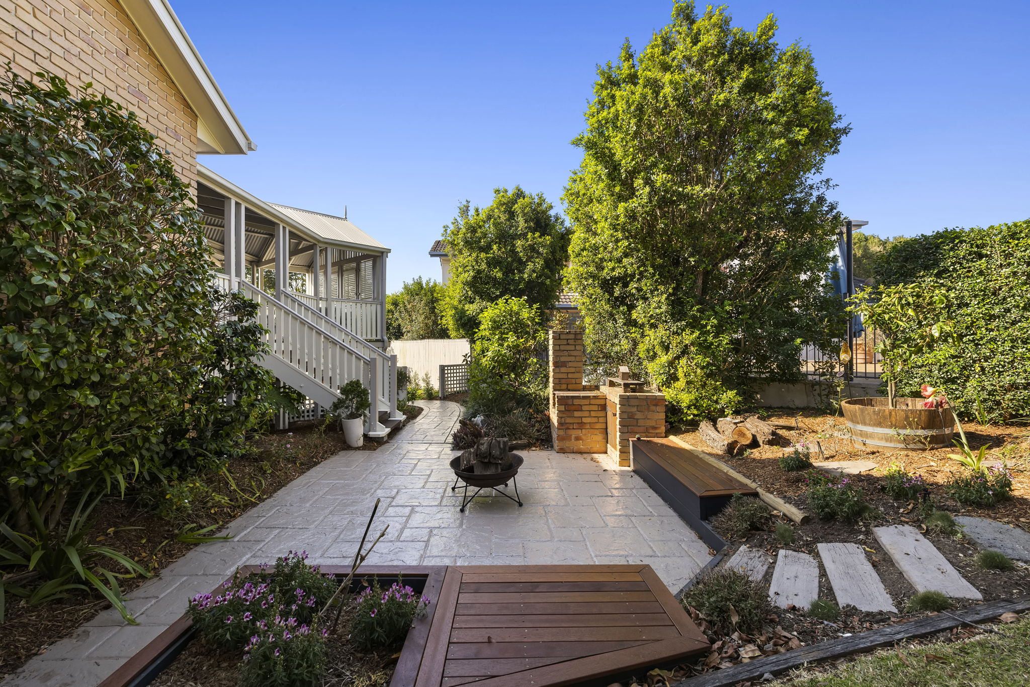 • Fire pit, grassed area, multiple outdoor breakout spaces and garden shed