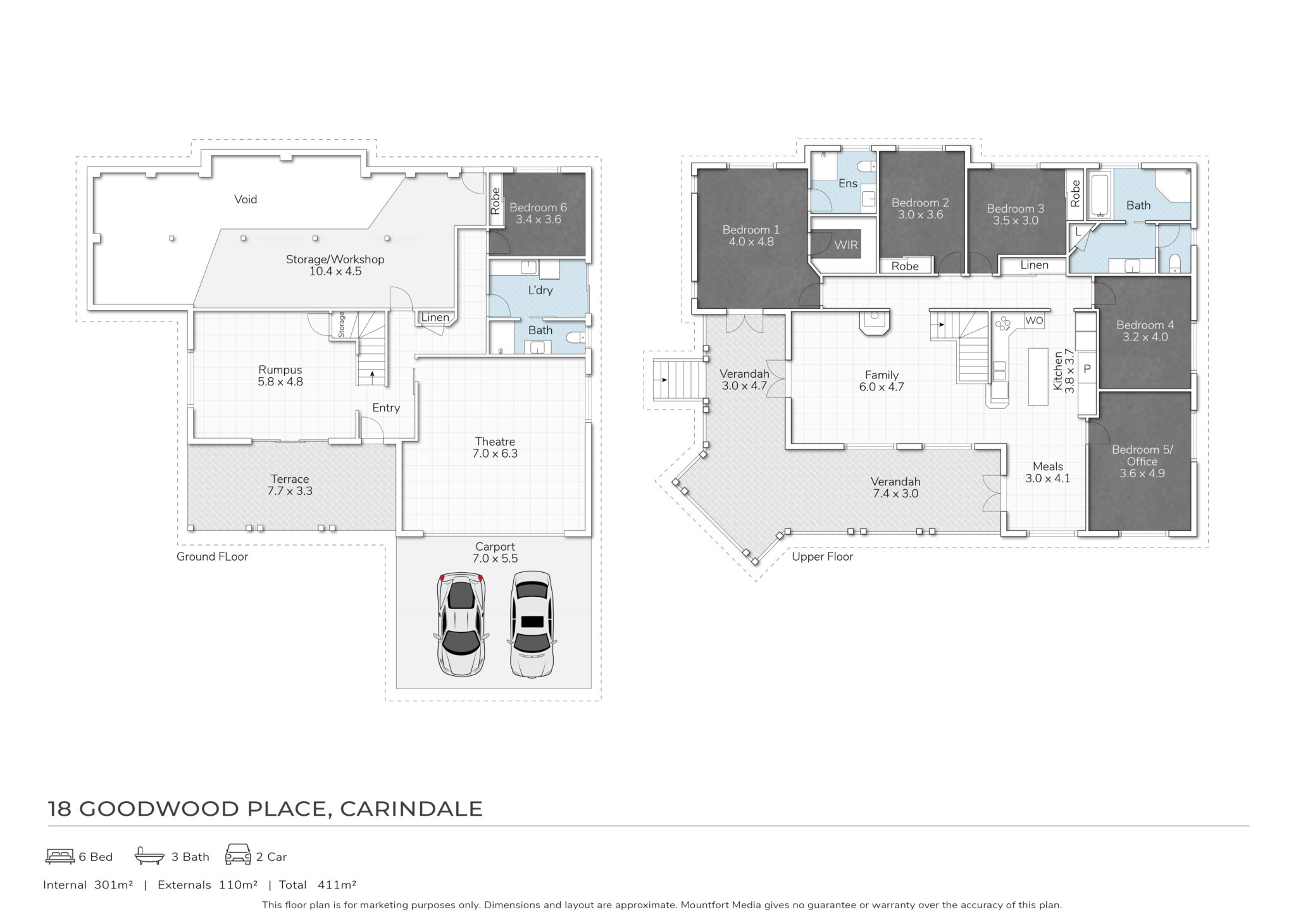 Downstairs is designed for flexibility, featuring a generous living area, dedicated theatre/rumpus room, an oversized workshop area, a sixth bedroom and a full bathroom. This level offers excellent potential for dual living, guests or extended family.