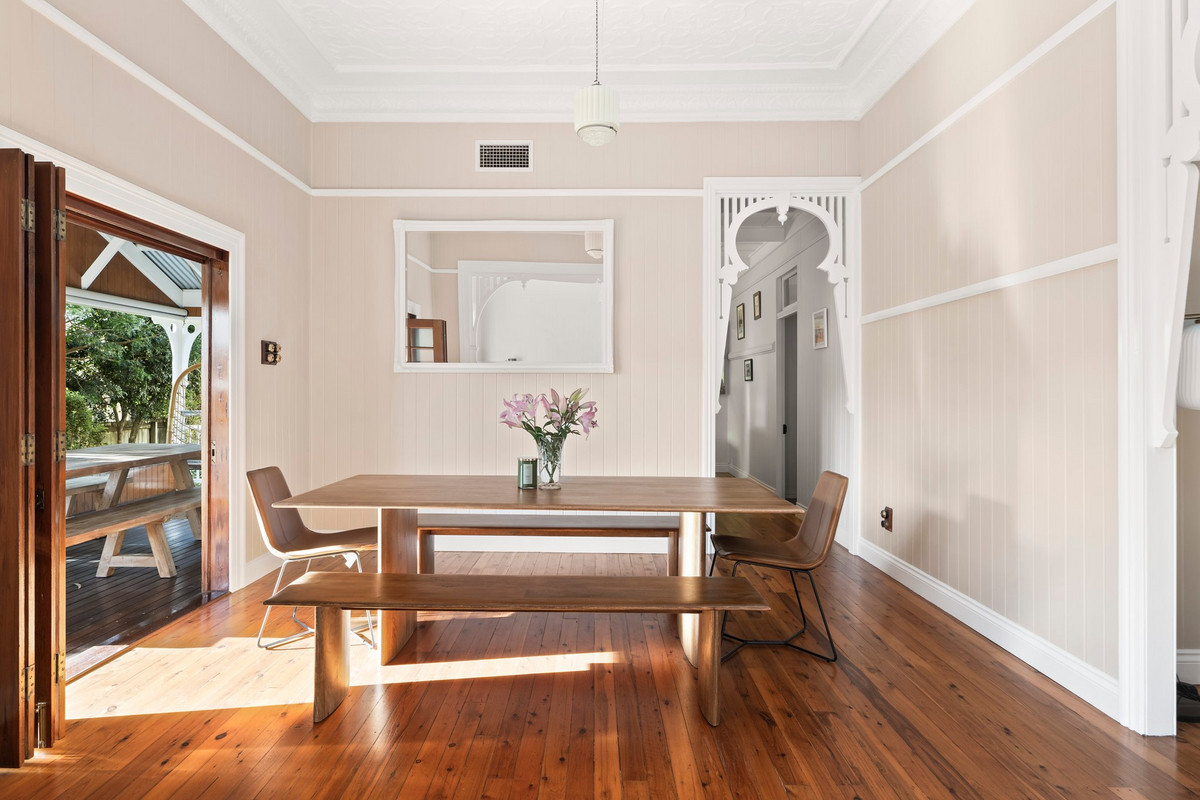 Framed by manicured gardens and towering trees, the home stands with quiet grandeur. The wide veranda welcomes you, offering a glimpse into a world where life moves at a gentler pace. Inside, the rich glow of polished timber floors, the soft curves of ornate fretwork, and the natural light spilling through bay windows create an atmosphere that feels both elegant and inviting.